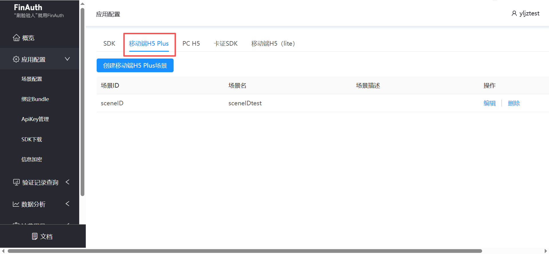 登录FinAuth控制台,应用配置-场景配置-移动端H5 Plus-创建移动端H5场景
